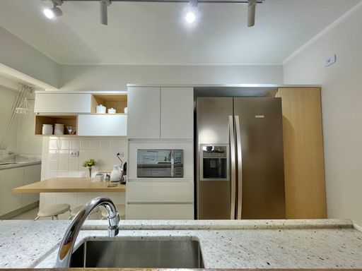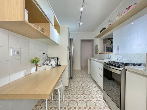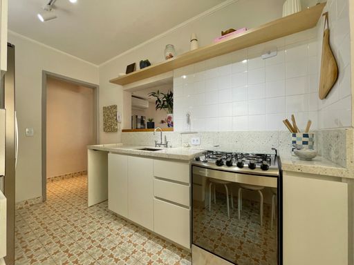 Belíssimo apê em Pinheiros, 2 dorms, sacada, cozinha americana, reformado e com 1 vaga. Rua tranquila, arborizada e a 600m do metrô Sumaré. Lazer com piscina, academia, salão de festas e bicicletário.