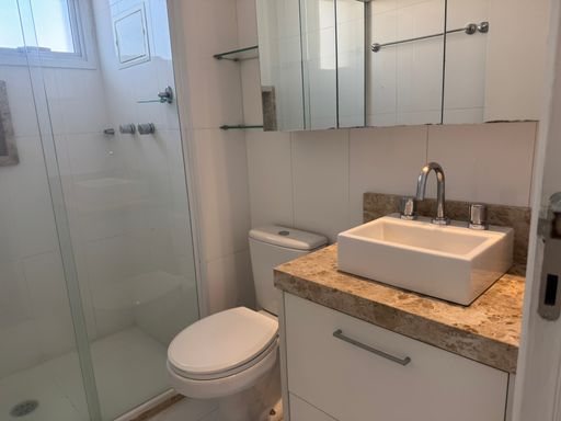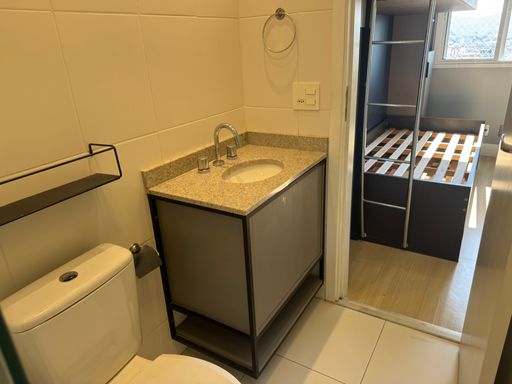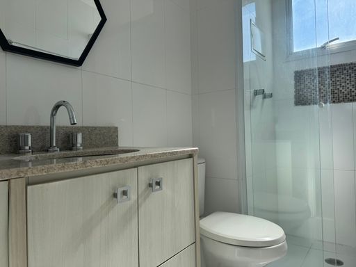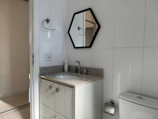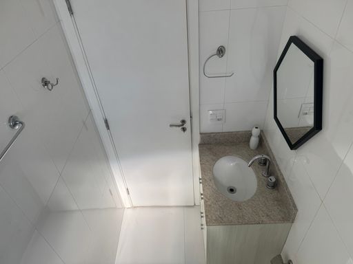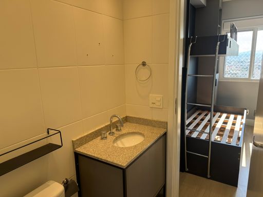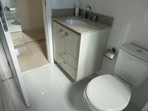 Lavabo elegante, lavanderia funcional e 4 banheiros no total, pensados para o dia a dia da família;