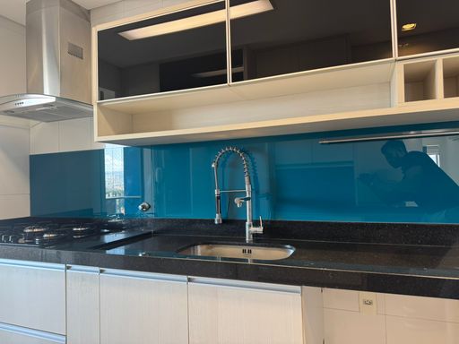 Ampla sala com dois ambientes, perfeita para receber bem, integrada à cozinha americana com ilha e despensa;