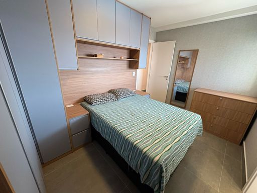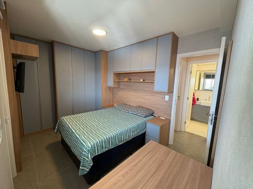 Com 3 dormitórios (1 suíte), o apartamento apresenta acabamentos de alto padrão: piso em porcelanato Portobello, armários planejados em todos os ambientes, cozinha semi-americana com marcenaria sob medida, aquecimento a gás e torneiras aquecidas na cozinha e banheiros.