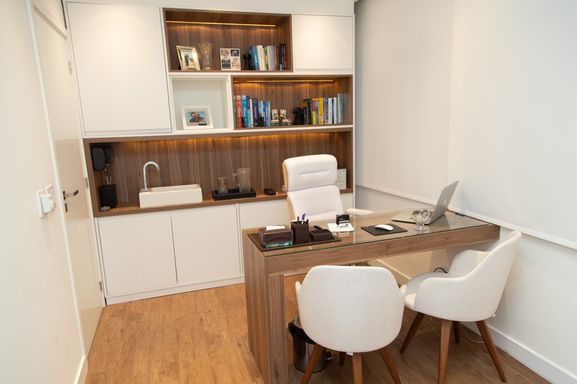 Excelente conjunto comercial com 133 m² de área total, atualmente configurado como consultório/clínica, totalmente mobiliado, equipado e reformado, com acabamento de alto padrão.