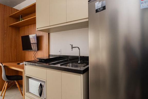 Com uma localização estratégica e bem servida por comércio e transporte, este estúdio oferece a combinação perfeita entre praticidade e conforto. Totalmente equipado para atender às suas necessidades, seja para um curto ou longo período de estadia.